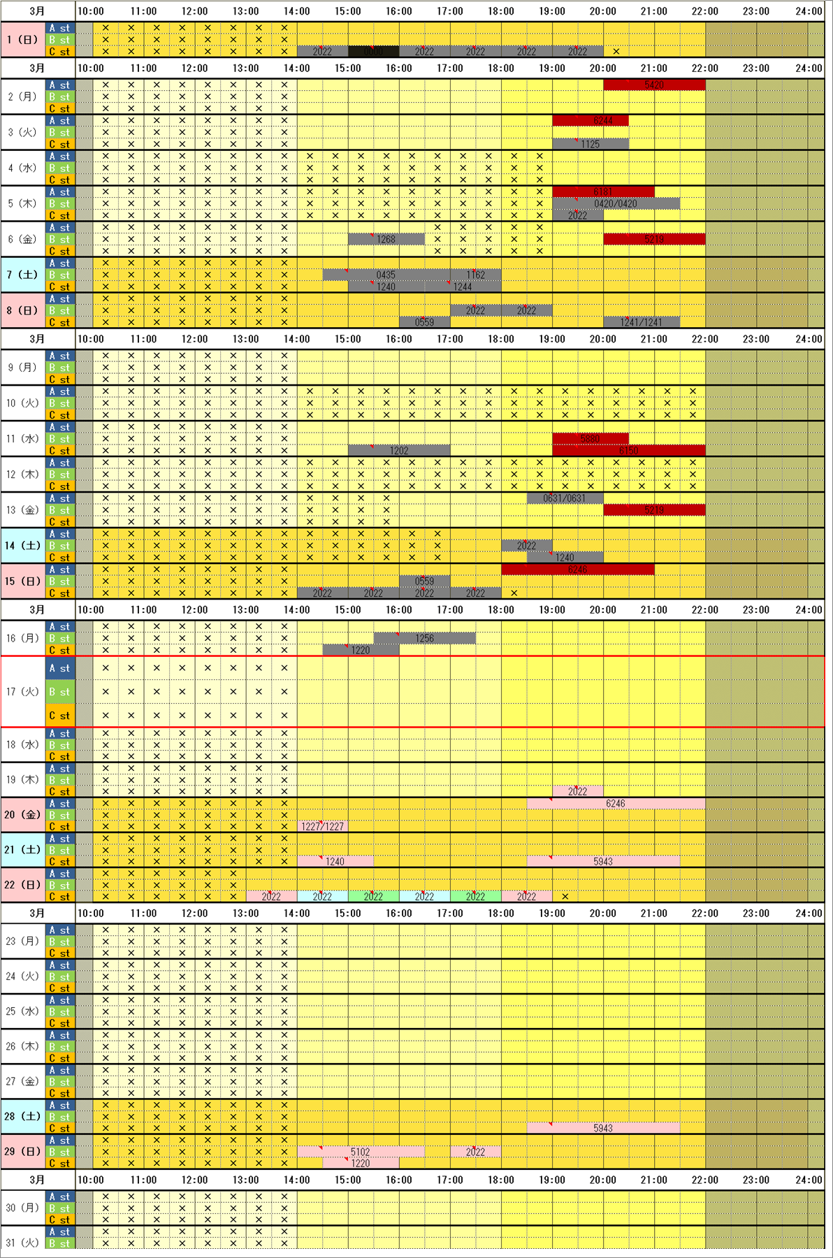 × ➡ 店休日or時間帯店休